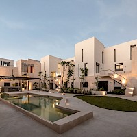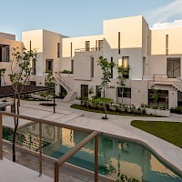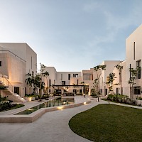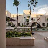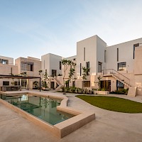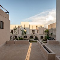 OMH, está conformada por 48 departamentos distribuidos en 12 torres con una terraza central para prácticar yoga y amplias áreas verdes para lectura y esparcimiento de los habitantes.