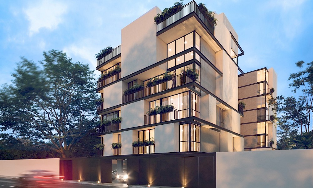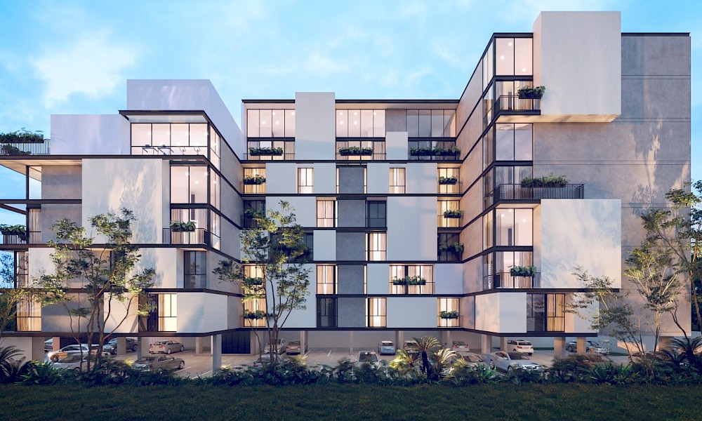 El desarrollo se caracteriza por estar confrmado por únicamente 34 departamentos con diferentes modelos de entre 1 y 2 habitaciones.