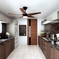 Este modelo se caracteriza por tener la sala de TV y una habitación en planta baja.