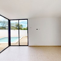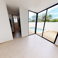 Este modelo se caracteriza por contar con una distribución armoniosa en dos niveles con una amplia habitación en planta baja. Incluye un cuarto de servicio con baño y terraza techada.