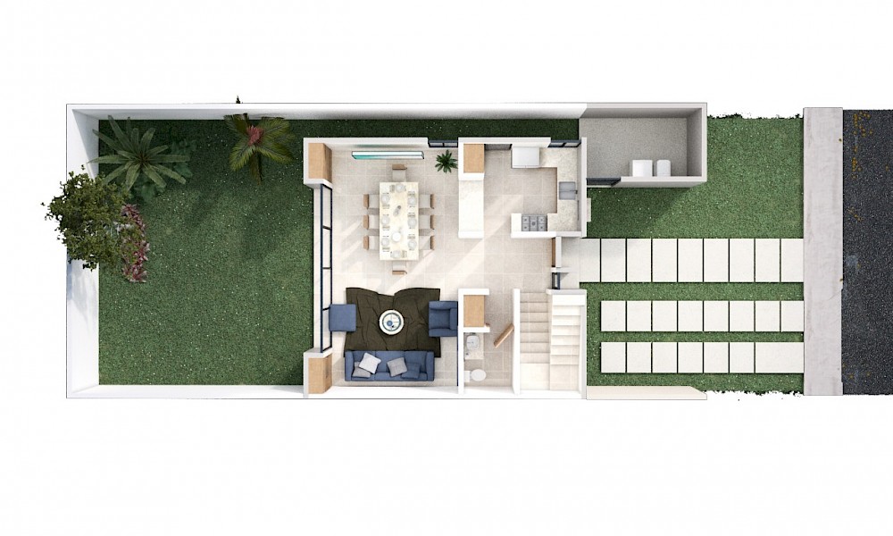 Esta propiedad se caracteriza por tener una amplia cocina con barra desayunador integrada armónicamente a los espacios en planta baja, con una distribución equilibrada en dos niveles, amplios ventanales y con opción de crecimiento a futuro.