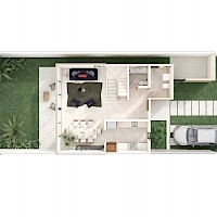 Esta propiedad se caracteriza por econtrarse en esquina y por tener una distribución equilibrada en dos plantas, amplios ventanales y con opción de crecimiento a futuro.