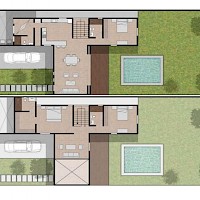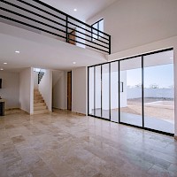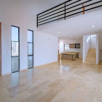 El modelo B se caracteriza por contar con sala a doble altura, además de una sala de tv en planta alta.