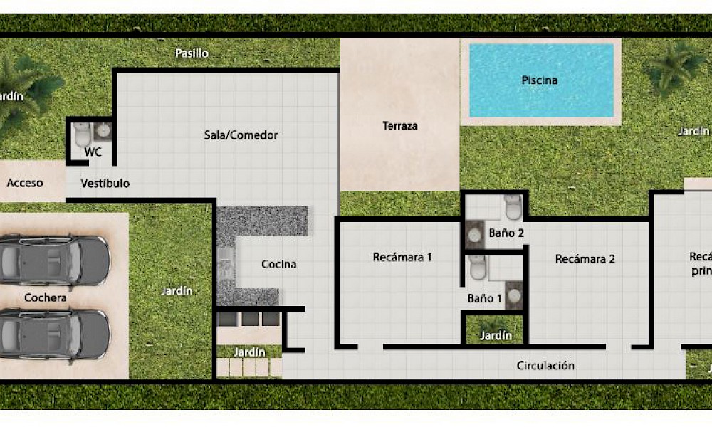 - Estacionamiento techado Capacidad 2 vehículos