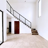 La casa se caracteriza por tener una sala-comedor a doble altura que permite tener una buena iluminación.