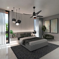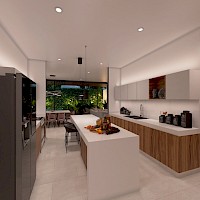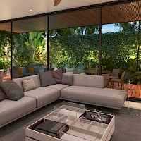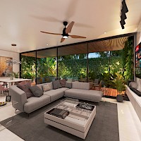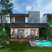 Las residencias se caracterizan por sus espacios bien aprovechados con tres amplias habitaciones y una vista panorámica hacia el jardín desde la sala-comedor.