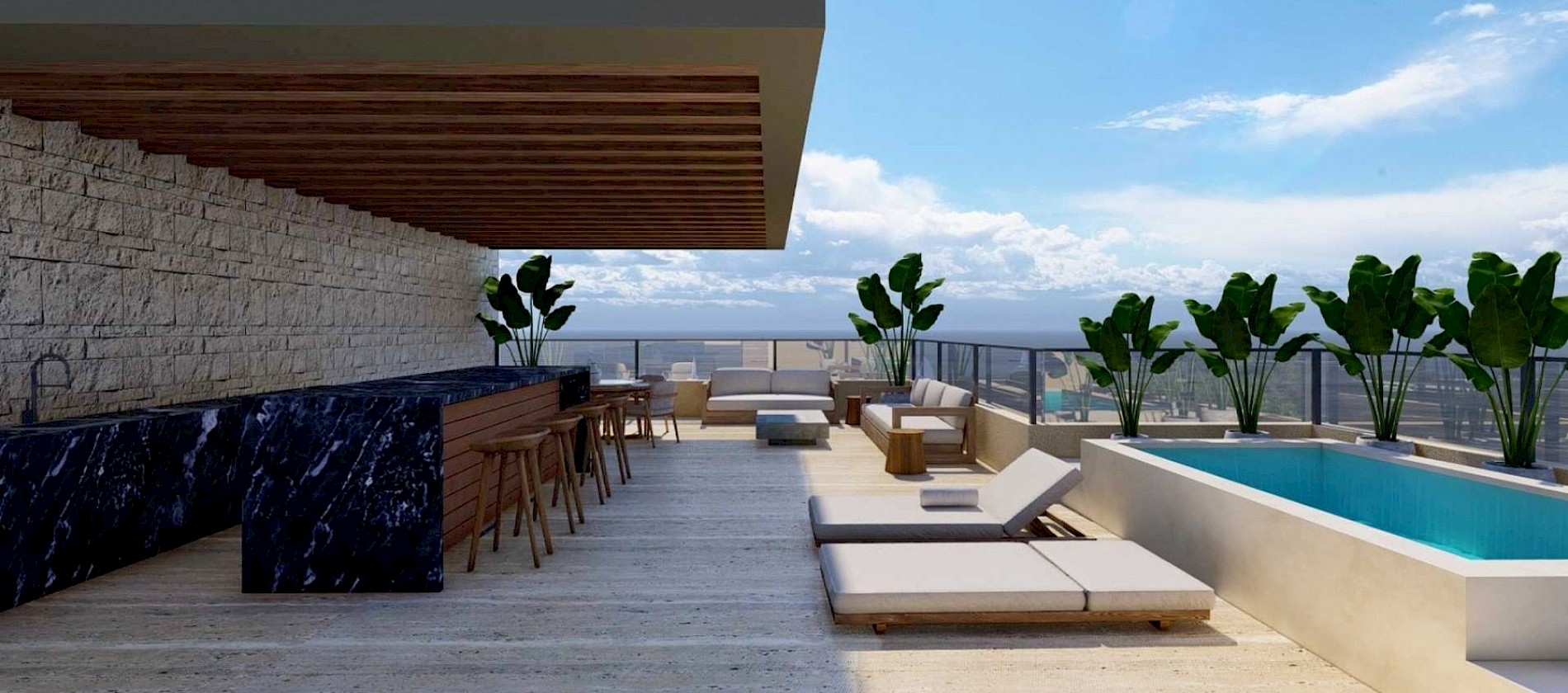 Este modelo se caracteriza por sus amplios espacios distribuidos de manera armoniosa con 3 habitaciones, una de ellas con terraza privada, así como un family room.