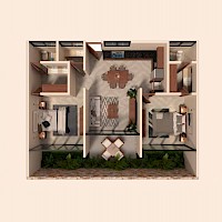 Este prototitpo se caracteriza por tener dos habitaciones con baño completo y clóset vestidor. Además de una terraza y área de jardín.