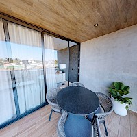 El desarrollo consta de dos torres con 8 niveles de departamentos de lujo. Este modelo se caracteriza por contar con 2 recámaras distribuidas en una sola planta.