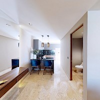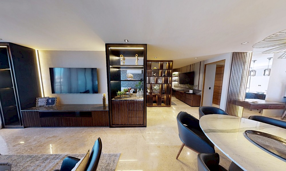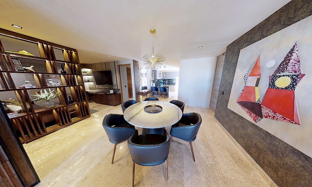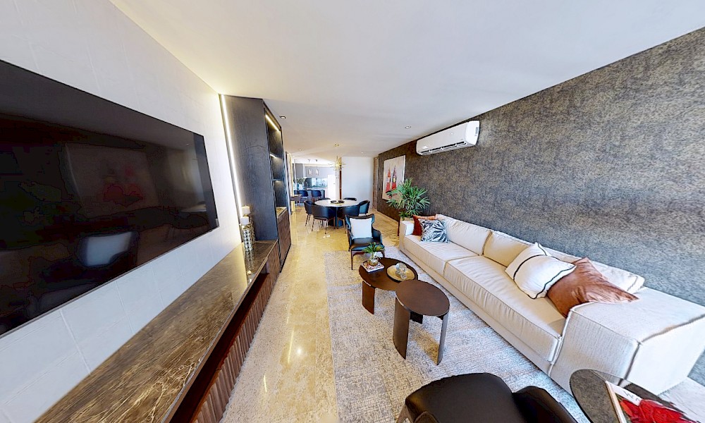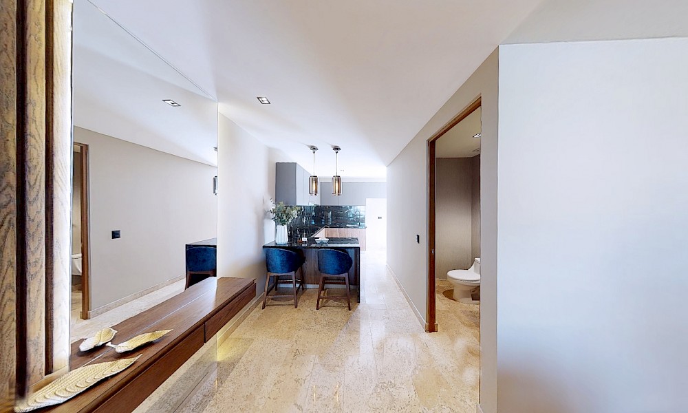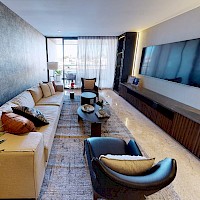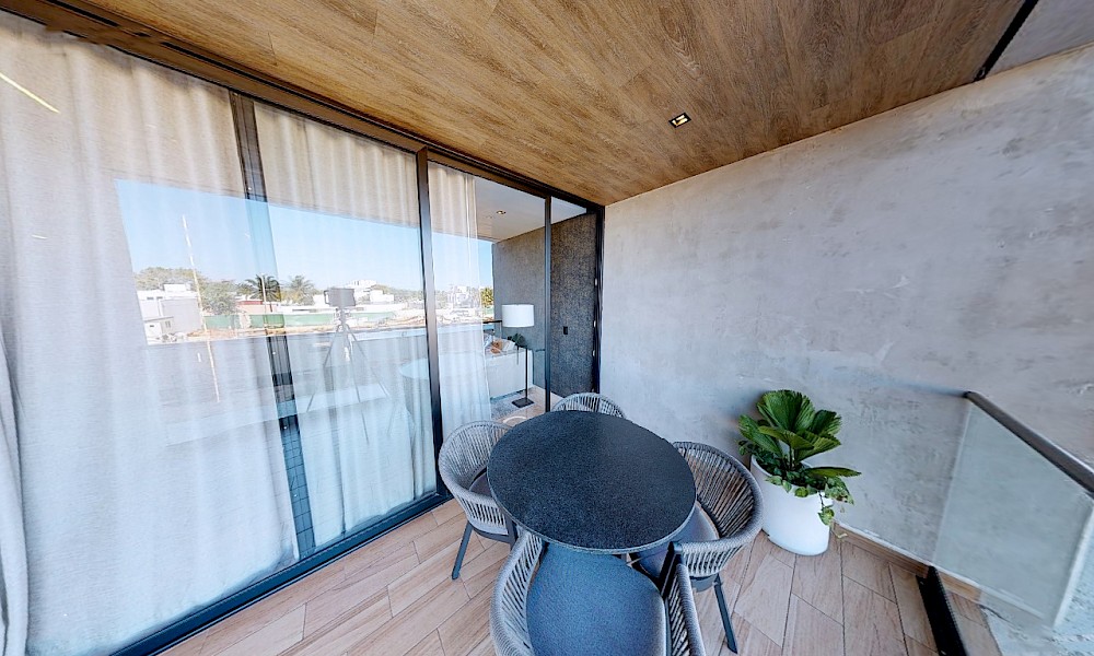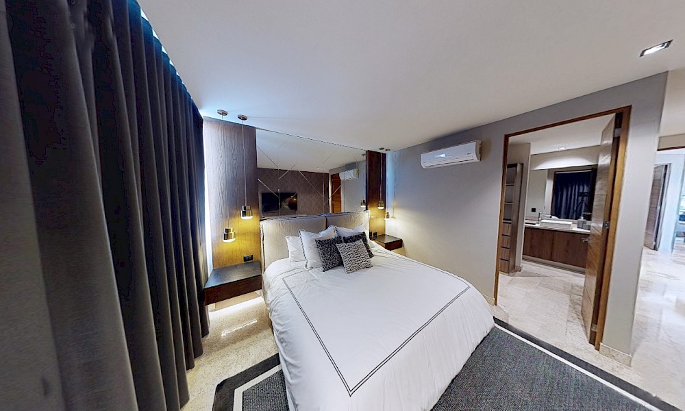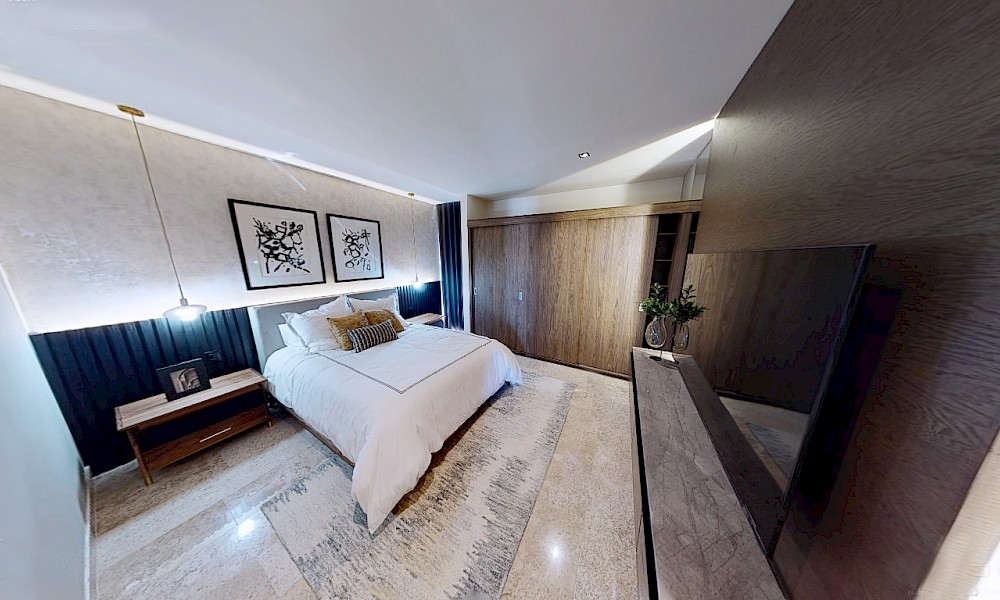 El desarrollo consta de dos torres con 8 niveles de departamentos de lujo. Este modelo se caracteriza por contar con 3 recámaras distribuidas en dos plantas.