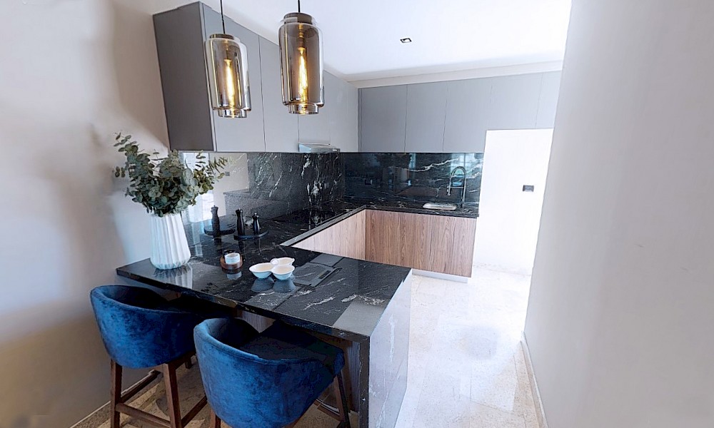 - Cocina con barra desayunadora