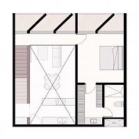 Este prototipo se caracteriza por tener dos habitaciones y estar distribuido en dos niveles.