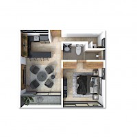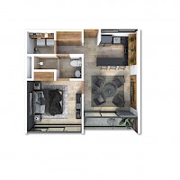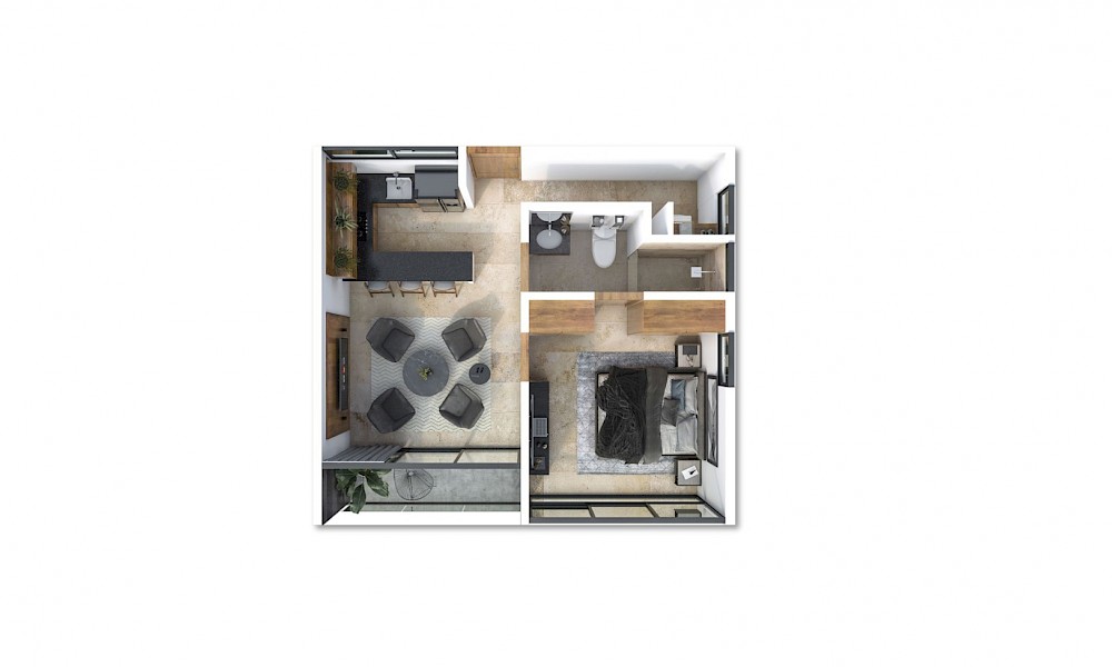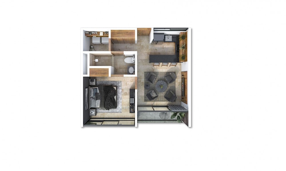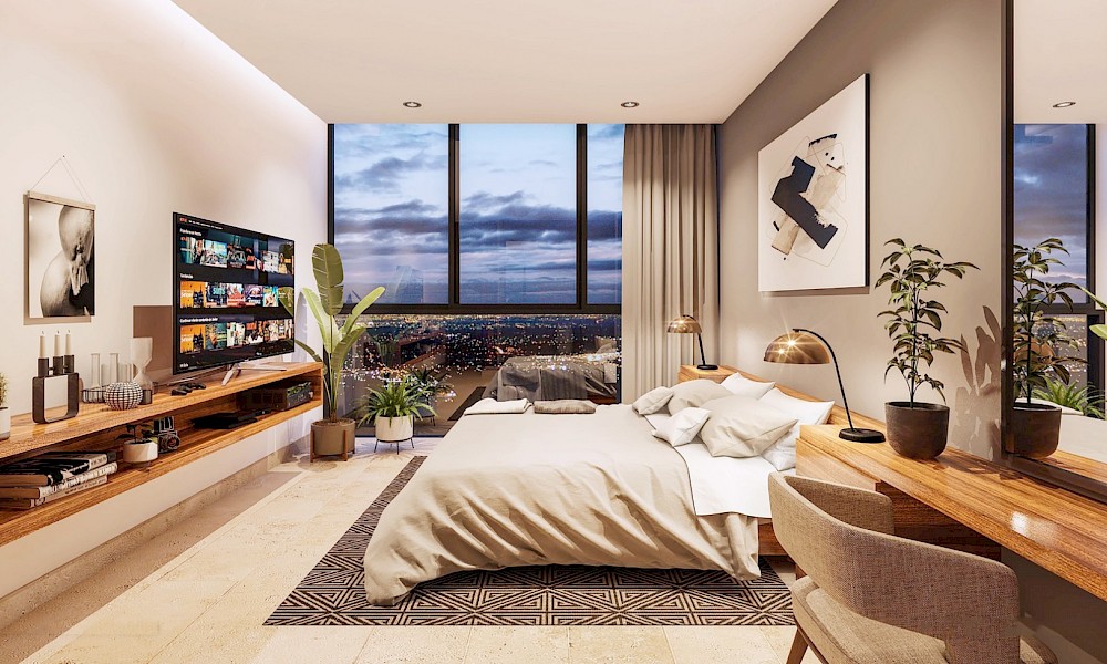 Este modelo se caracteriza por contar con una distribución armoniosa con una habitación con baño compartido con visitas, además que tenemos la opción de elegir los primeros dos niveles de las torres.