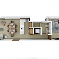 Este modelo se caracteriza por tener una habitación y la cocina con barra desayunadora.