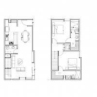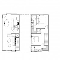 Este modelo que se encuentra en la planta baja se caracteriza por contar con 2 habitaciones, distribuidas de forma armoniosa en el segundo nivel.