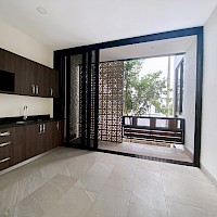 Este modelo se caracteriza por tener dos habitaciones, la principal con clóset vestidor y una cocina con espacios amplios.