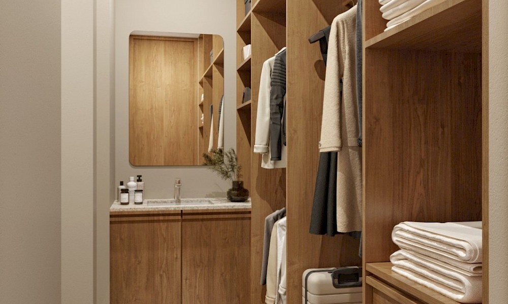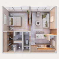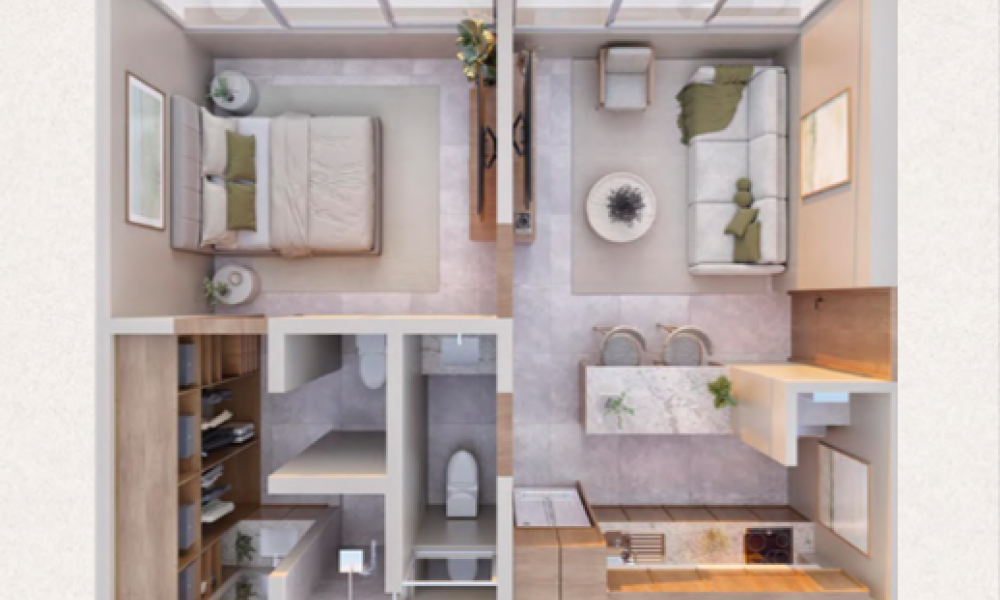Este modelo se caracteriza por tener una habitación independiente del área social, además de un walk-in clóset, baño completo + medio baño para visitas y una bodega en el exterior.