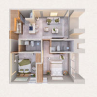 Este modelo se caracteriza por tener dos habitaciones y dos baños, además de tener un balcón en el área de la sala y bodega exterior.