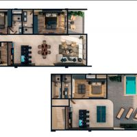 Este modelo se caracteriza por estar distribuído en 2 niveles y tener 3 habitaciones cada una con baño propio + cuarto de servicio