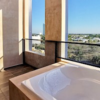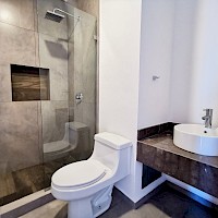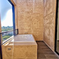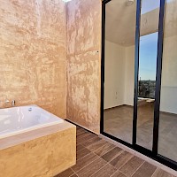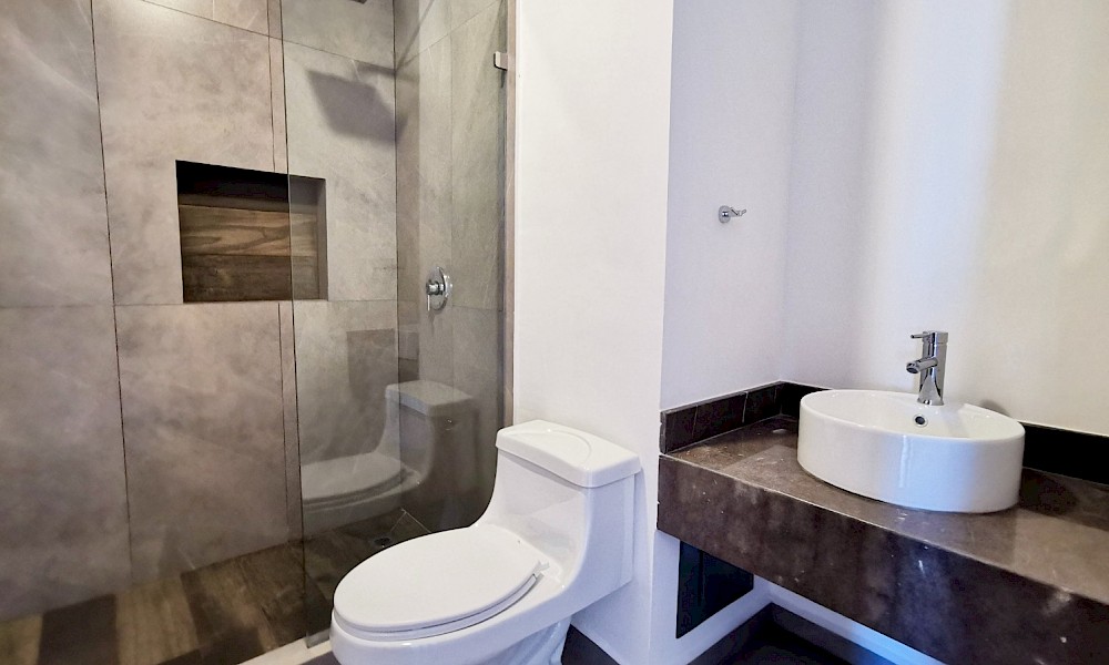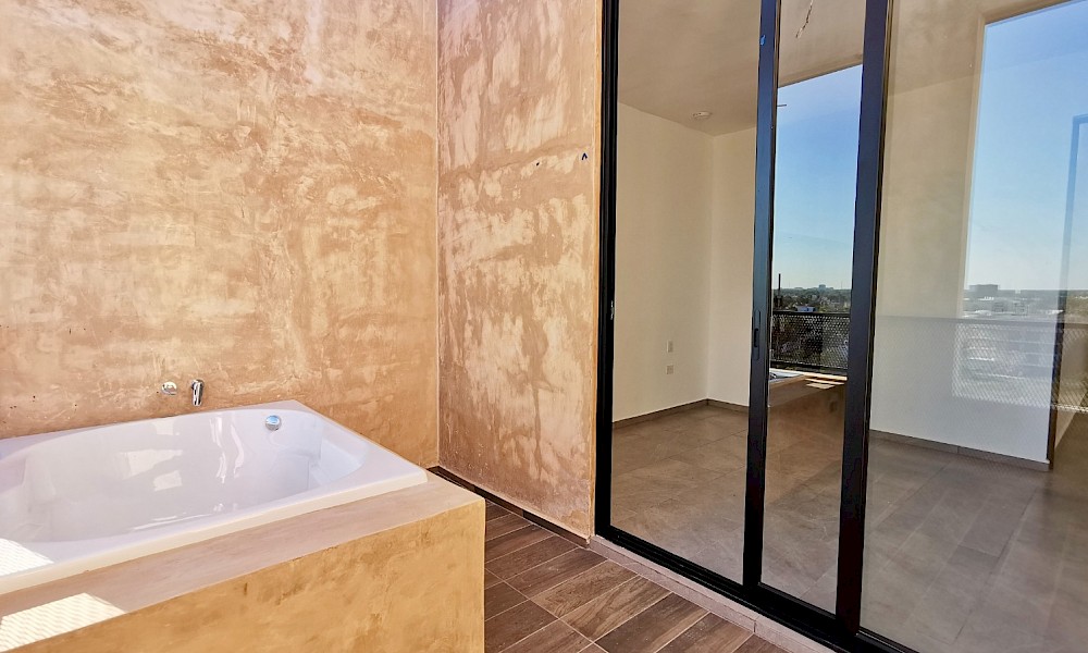 El penthouse modelo A se caracteriza por contar con la habitación principal en planta baja y dos habitaciones secundarias con terraza en el segundo nivel.