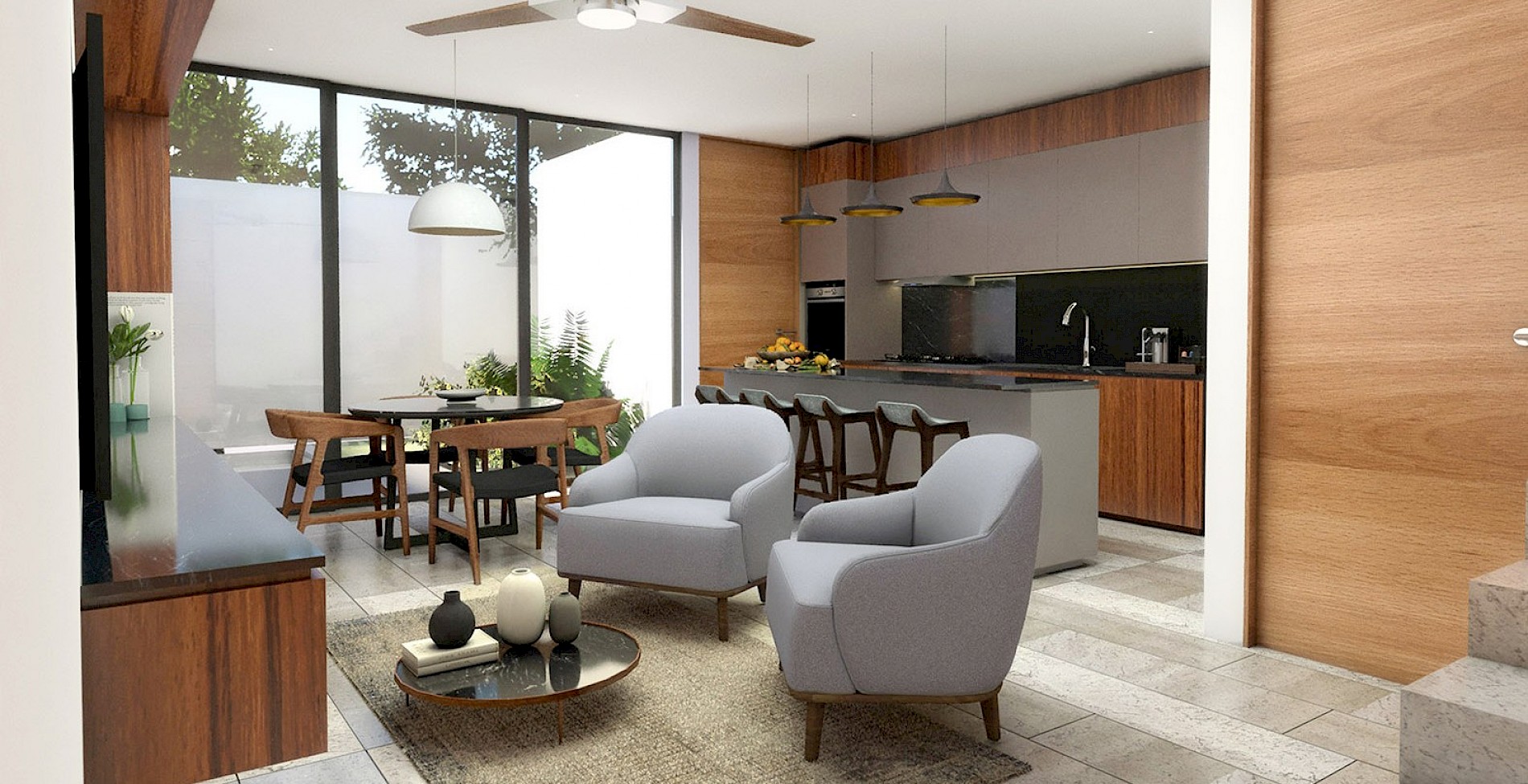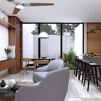 Este modelo se caracteriza por contar con dos habitaciones en planta alta, además de tener amenidades como salón de juegos para niños, sport bar y área de yoga.