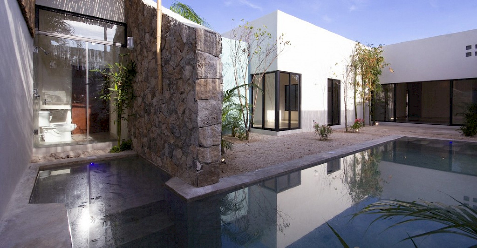 Las casas cuentan con una distribución en una sola planta con dos amplias habitaciones, la habitación principal con acceso directo al canal de nado.