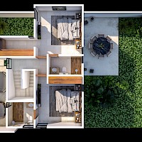 El modelo Anara se caracteriza por contar con una armoniosa distribución en dos plantas con dos habitaciones en el segundo nivel.