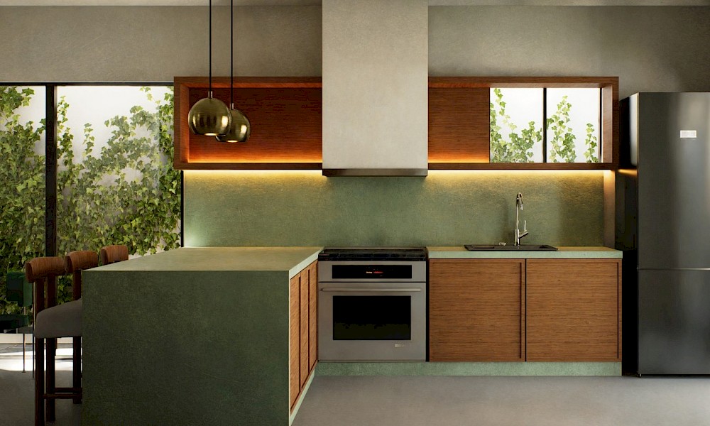 - Cocina con barra desayunadora