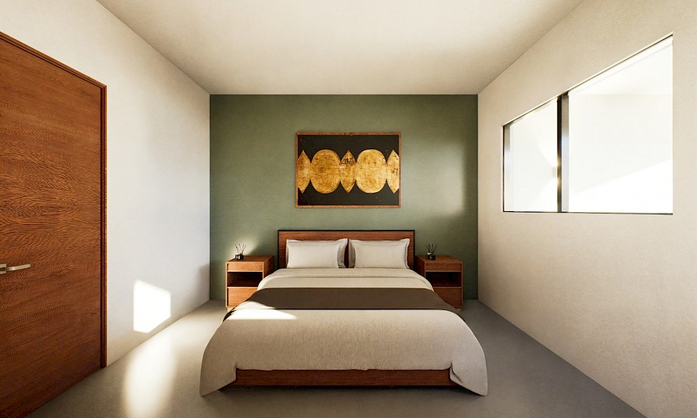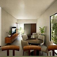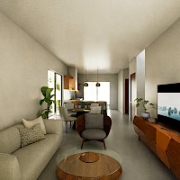 Este prototipo se caracteriza por estar distribuído en un solo nivel, contar con dos habitaciones y dos baños completos.