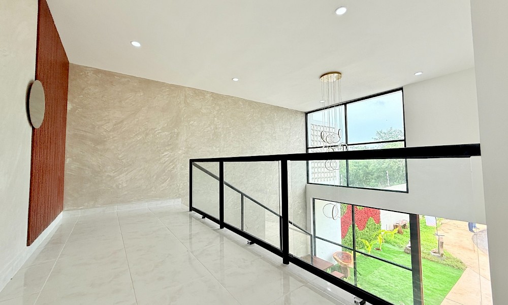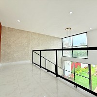 Este modelo se caracteriza por contar con una doble altura en el área de la sala, además de contar con la habitación principal en planta baja y tres recámaras completas en el segundo nivel.