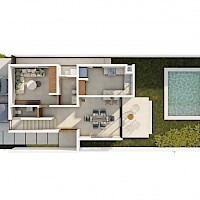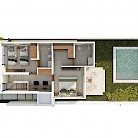 Este modelo se caracteriza por contar con tres amplias habitaciones, así como un área exclusiva destinada para Home Office, adaptándose a las nuevas necesidades de la vida laboral.