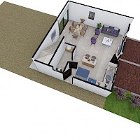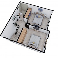 Este modelo se caracteriza por tener dos habitaciones en planta alta con baño compartido.