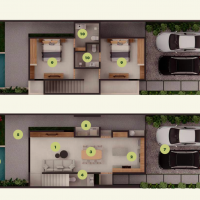 El modelo B se caracteriza por estar distribuído en dos niveles y contar con dos habitaciones en planta alta, además de tener la opción para crecer una tercera habitación.