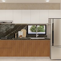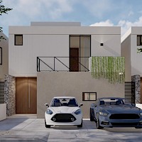 Este modelo se caracteriza por tener una habitación en planta baja, y dos habitaciones más en planta alta. Además cuenta con la posibilidad de crecimiento para una habitación adicional.
