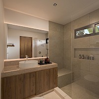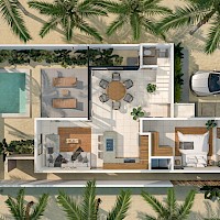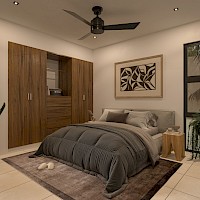 Estas casas se caracterizan por estar cómodamente distribuidas las tres habitaciones en dos plantas y por su espectacular vista desde la sala hacia la piscina.