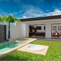 Esta propiedad se caracteriza por tener un estilo moderno, espacios abiertos y estar distribuido en una sola planta con un jacuzzi en el jardín además de la piscina.