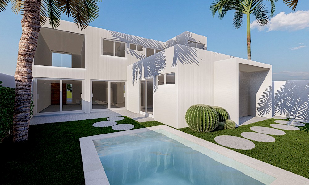 Este modelo se caracteriza por contar con una hermosa doble altura en su sala, un amplio jardín interior y tener una armoniosa distribución con espacios distribuidos en dos niveles. Cuenta con tres habitaciones, una de ellas en planta baja para mayor comodidad.