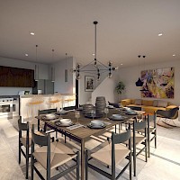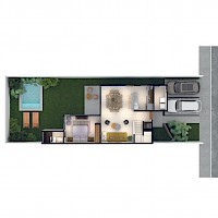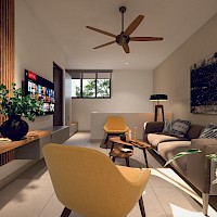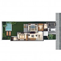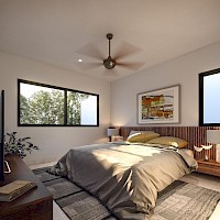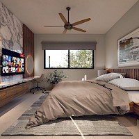 Este modelo se caracteriza por contar con tres amplias habitaciones, una de ellas en planta baja para mayor comodidad.