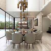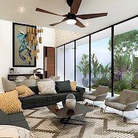 Este modelo se distingue por tener un estacionamiento con capacidad para 4 vehículos, dos bajo techo y dos al aire libre, así como como un área de lavado techada con clóset de blancos.