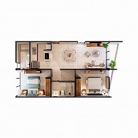 El modelo WA se caracteriza por contar con dos habitaciones, la principal con baño y área de clóset, además de tener la opción de estar ubicado en los niveles uno y dos de la torre.