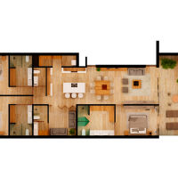 El modelo Zafiro se caracteriza por estar distribuido en tener 3 habitaciones completas + un estudio que se puede convertir en cuarta habitación. Además de una terraza de excelente tamaño, ideal para pasar las tardes. Existe la opción confort con una terraza de mayor tamaño.