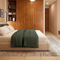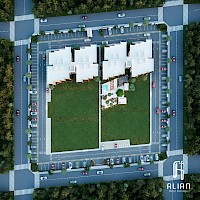 Alian estará conformado de 132 departamentos distribuidos en 6 torres con amenidades como piscina, área social y seguridad por medio de caseta de vigilancia. Este modelo se caracteriza por contar con una habitación con baño propio.