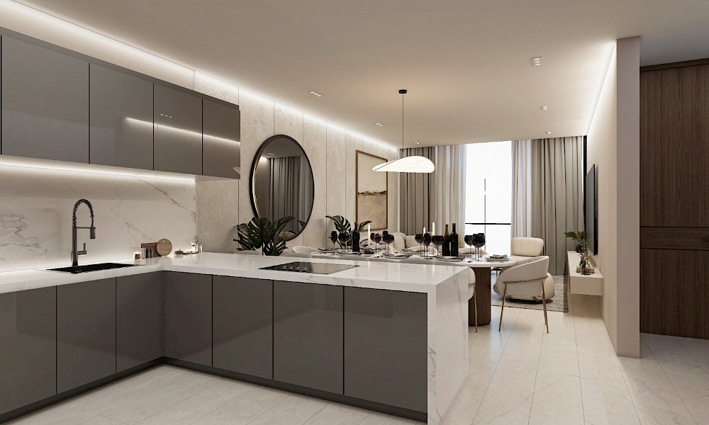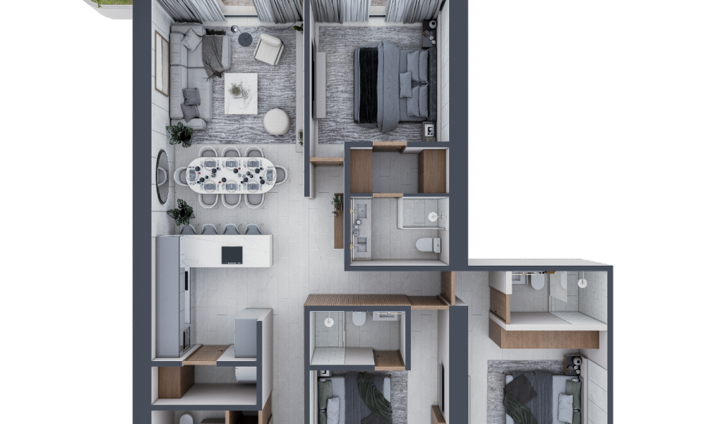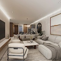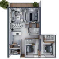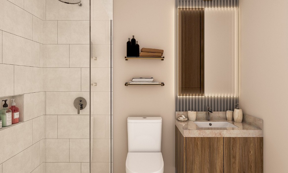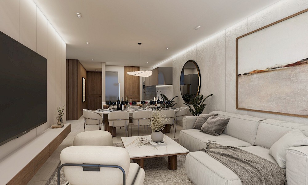 El complejo estará conformado por una zona comercial y cuatro torres residenciales, la primera torre en venta contará con 54 departamentos. El modelo C se caracteriza por tener tres habitaciones, la principal con vista a la terraza.