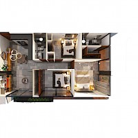 El modelo D se caracteriza por contar con tres amplias habitaciones y dos cajones de estacionamiento techado.