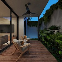 Esta opción se caracteriza por contar con 2 habitaciones con vista hacia la terraza y piscina.