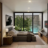 Ameka estará conformado de 50 departamentos distribuidos en siete niveles con amenidades como rooftop, piscina y sport bar, entre otros. El modelo E se caracteriza por contar con una habitación con baño completo, una habitación flex y área de jardín con piscina privada, así como estar ubicado exclusivamente en la planta baja de la torre.