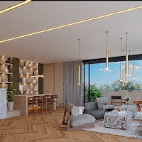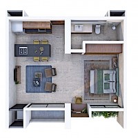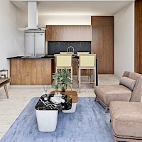Aposento es un desarrollo conformado por 22 departamentos, que tendran acceso controlado, seguridad y amenidades. Este modelo se caracteriza por tener una habitación, y que gracias a su diseño arquitectónico, nos brinda la opción de ser un estudio completamente abierto o convertir la habitación en un espacio totalmente privado.