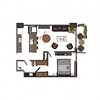 Este modelo se caracteriza por contar con una distribución armoniosa con una amplia habitación, un equipamiento completo, además de tener la opción de terrazas más amplias.