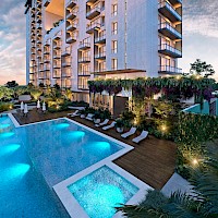Preventa de departamentos en Aqua Living, torre de 114 departamentos dentro de Aqua Avenue, un desarrollo de usos mixtos que además estará conformado de dos torres de consultorios, una torre de especialidades médicas, oficinas corporativas, un hotel y un centro comercial, que estará ubicado estratégicamente en una de las mejores zonas de la ciudad, Temozón Norte.