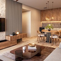 Este modelo se caracteriza por tener una habitación con baño compartido con el área de sala-comedor.